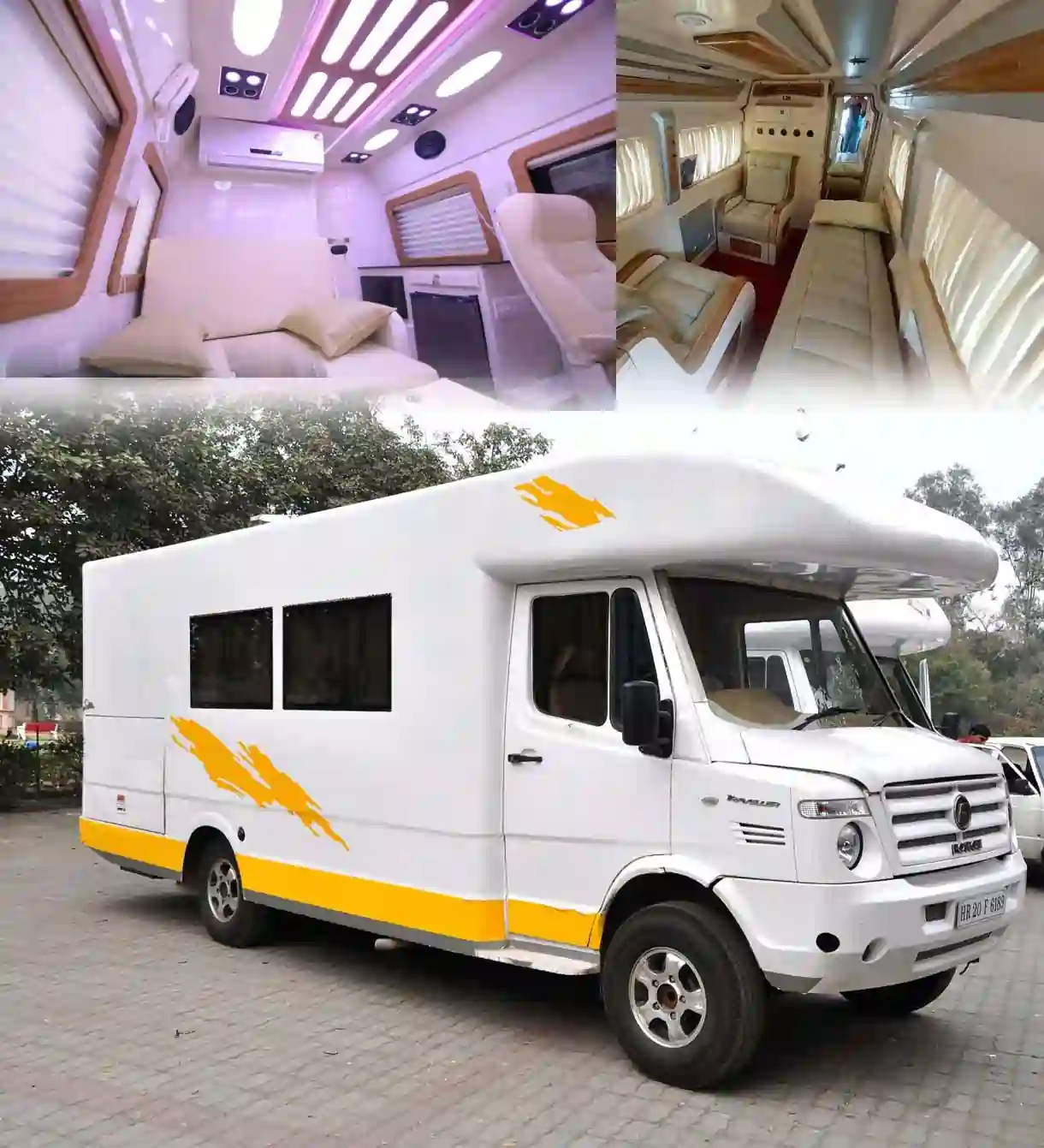 Caravan rent price depends on seating capacity and modified features you choose. We have 5, 6,7, 8, 9 seater caravan with Washroom, kitchen, sunroof and other facilities. Caravan on rent in Delhi for outstation trip is best way to enjoy a luxury trip with family. Contact us for Caravan hire Delhi. Whether you Need a compact van for a couple’s getaway or a big Motorhome Van Rental for a family adventure we have options for every need.